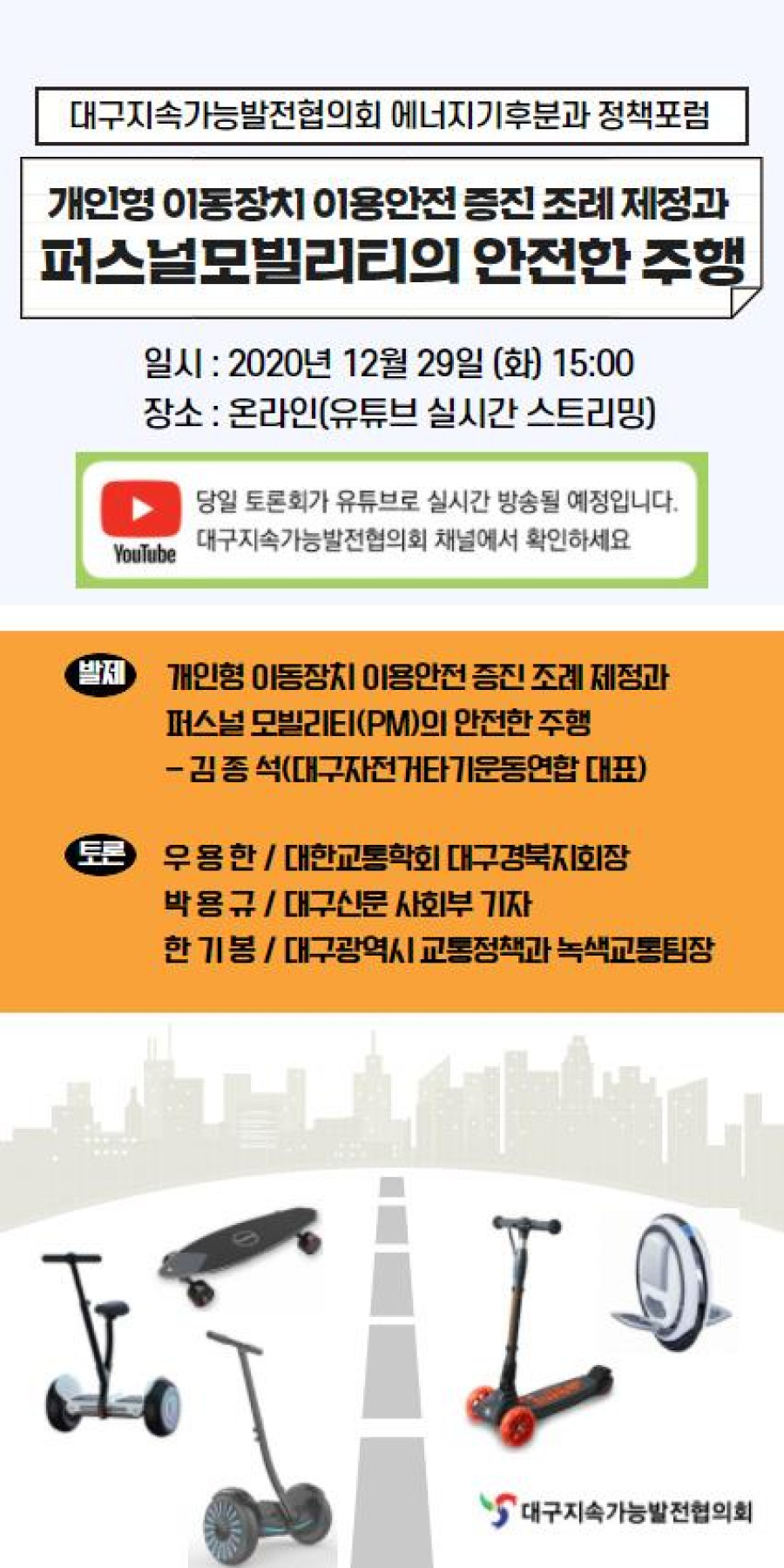2020개인형 이동장치 이용안전 증진 조례 제정과 퍼스널 모빌리티의 안전한 주행 정책포럼 (에너지기후분과)